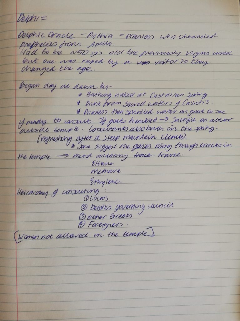 Ashley's (extremely tidy) notes on Delphi for our Ancient Greece novel. Research tips: take notes on the info so you don't have to wade through articles to find a key piece of info again.