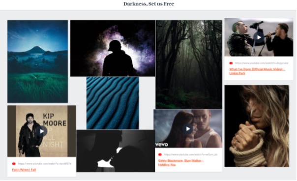 Ashley: It’s basically a visual (and audio) representation of some aspect of your book. The creator selects different images that represent the colours, emotions, events, etc, that you want to portray. Then, you arrange them into a collage. Some people choose to make physical mood boards with physical pictures pinned to something like a bulletin board while others make digital ones using platforms like Pintrest, or in our case Milanote.